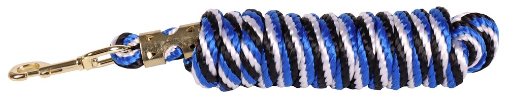 Extra langer, geflochtener Halfterführstrick mit goldfarbenem Karabinerhaken. Länge: 300cm.