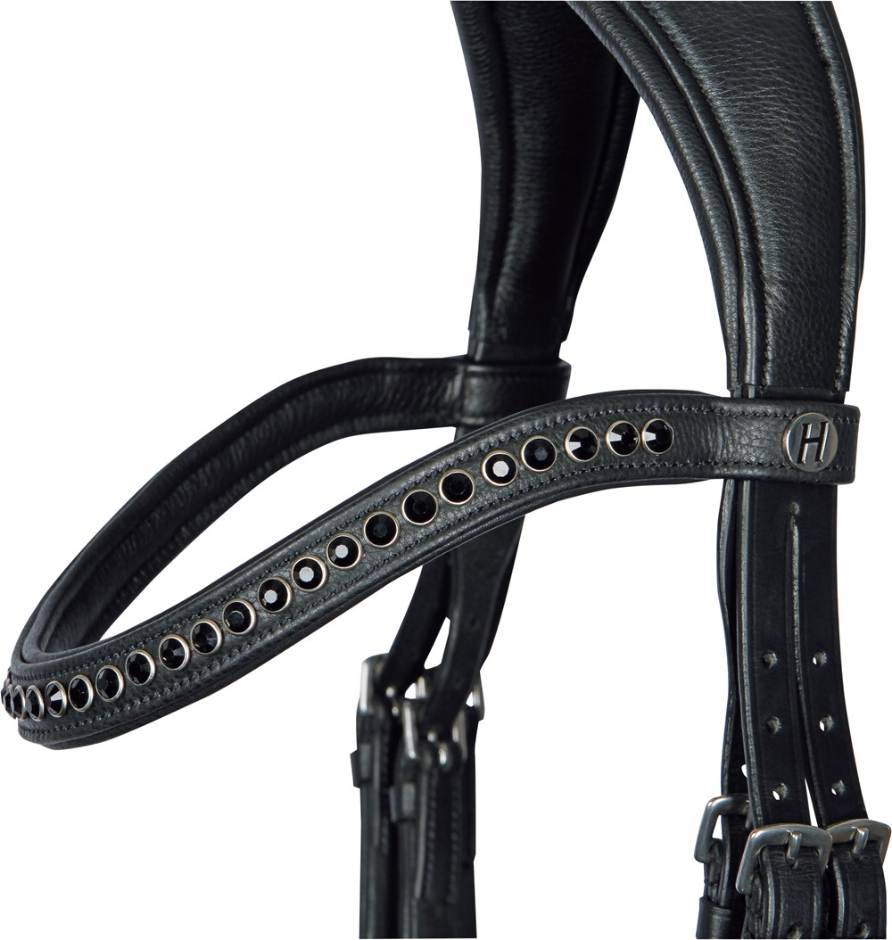 Dieses Zaumzeug hat schöne Kristalle am Stirnband.