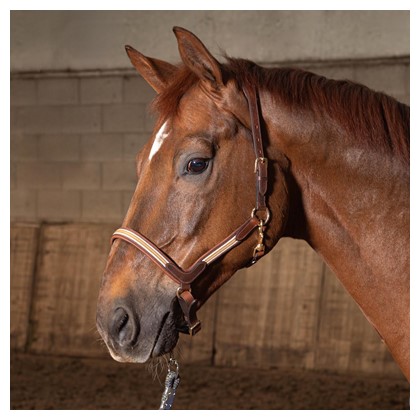 Das Halfter verfügt über eine Zierleiste am Nasenriemen und an den Backenstücken.