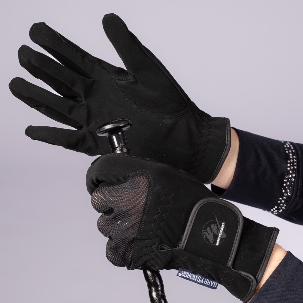 Luxuriöse Handschuhe aus Domy-Wildleder, mit elastischem Einsatz an beweglichen Stellen für maximale Bewegungsfreiheit. Bündchen mit Klettverschluss. Aus 50% PU und 50% PA. Maschinenwaschbar auf 30°C.