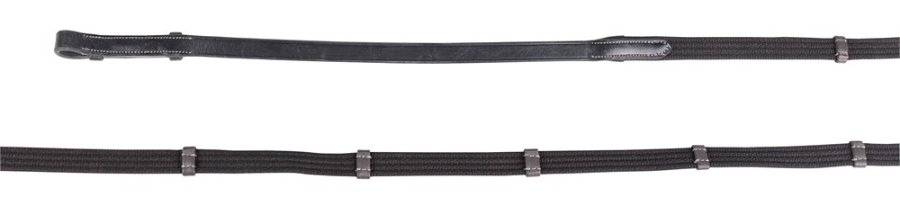 Mit (Saumur-)Blindverschlüssen und Gurtbandzügeln mit Stegen. Der Nasenriemen ist 3,5cm breit, einschl. Polster.