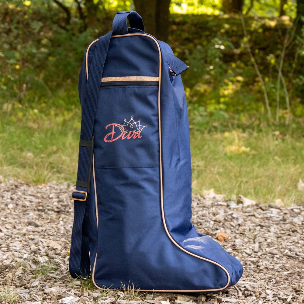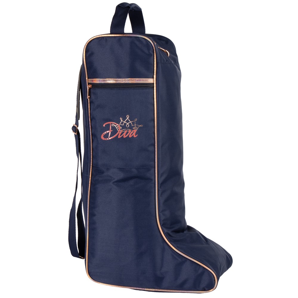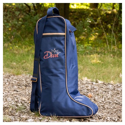 Stiefeltasche mit schönen farbigen Details, roségoldfarbenen Akzenten und Diva-Logo an der Seite.