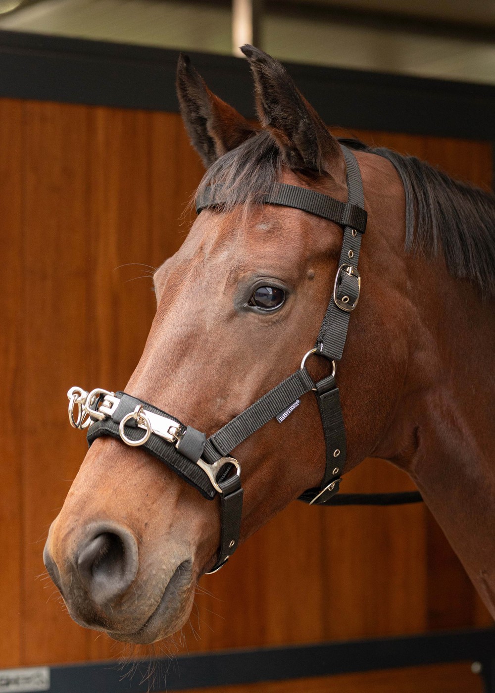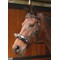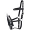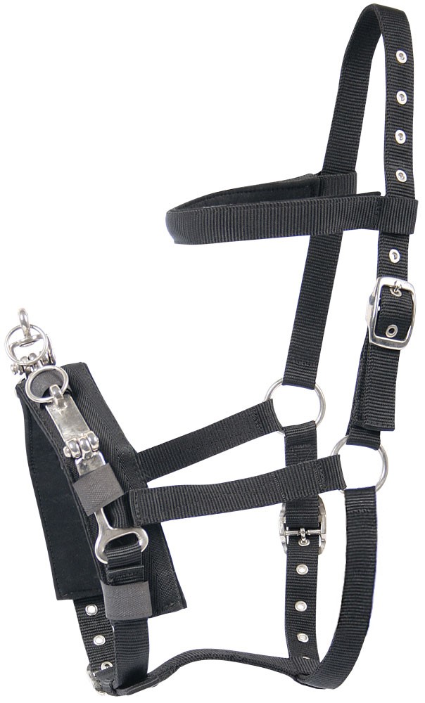 Der Kappzaum (Longierhalfter) ist am Genickstück, Nasenriemen und Kehlriemen verstellbar. Front- und Nasenriemen sind unterlegt.