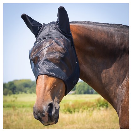 Vollständig mit Gummiband ausgeführt, so dass die Maske perfekt am Pferdekopf anliegt und gleichzeitig bequem sitzt. Klettverschluss an der Kehle. Das Bambusfutter an Nase und Genickstück ist atmungsaktiv, antibakteriell und für empfindliche Haut geeignet.
