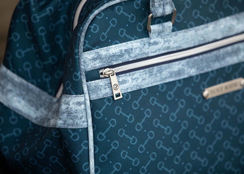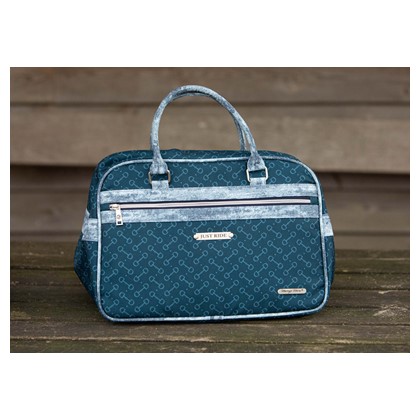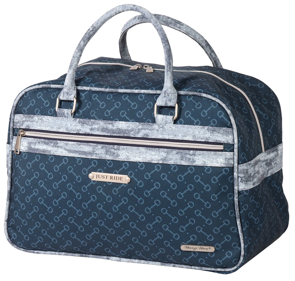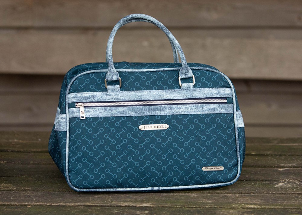 Multifunktionale Tasche, ideal für Putzzeug, Helm oder als Wochenendtasche. Mit Allover-Print. An der Seite befindet sich ein großes Fach mit Reißverschluss sowie ein kleines Innenfach mit Reißverschluss. Maße: 39 cm x 25 cm x 23 cm.