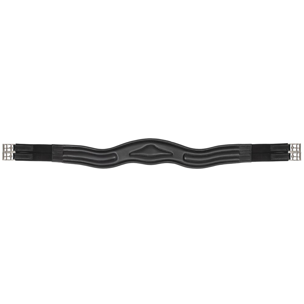 Die runde Form eines gebogenen oder anatomischen Gurts schmiegt sich perfekt an die Rundung des Pferdebauchs an..