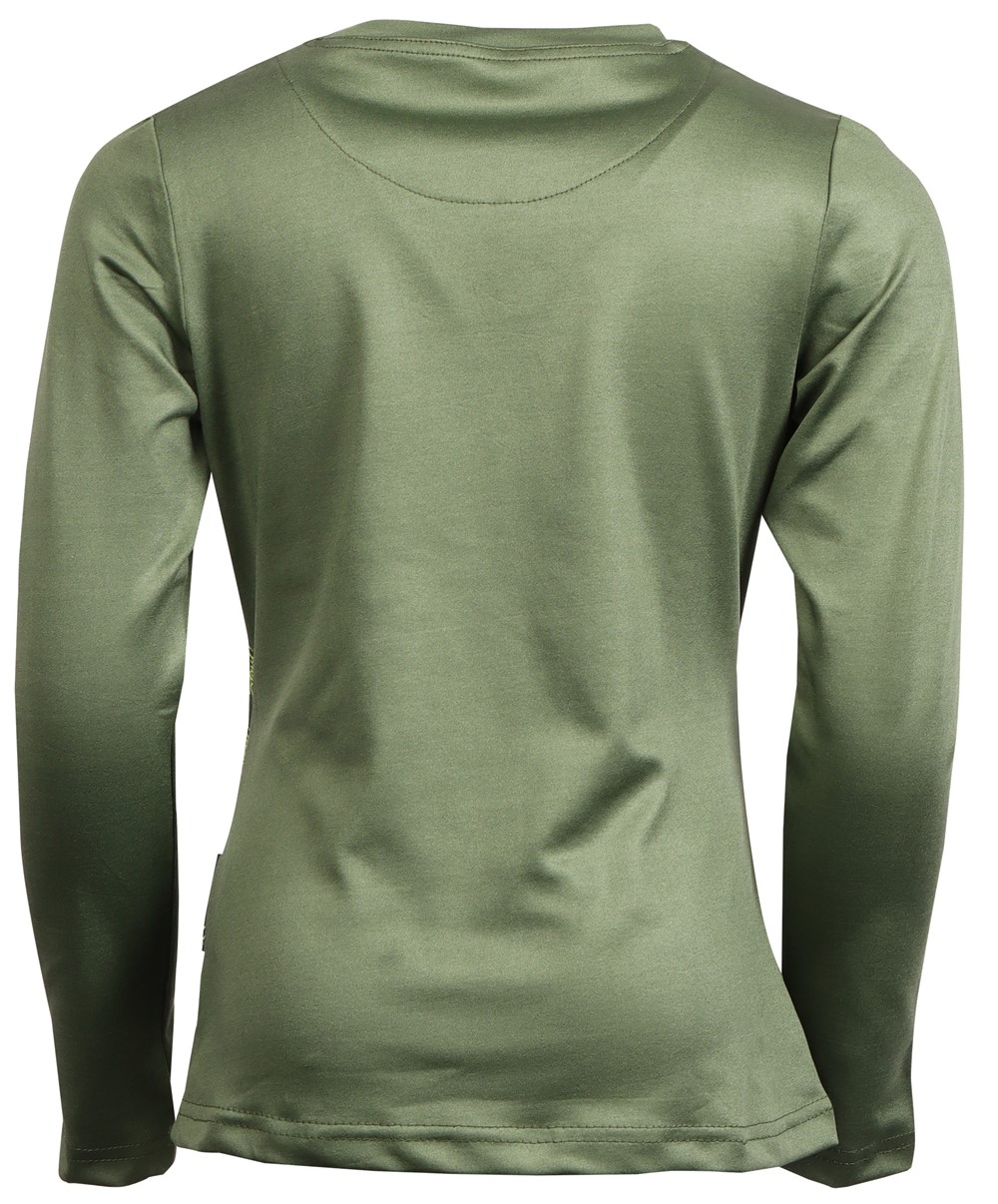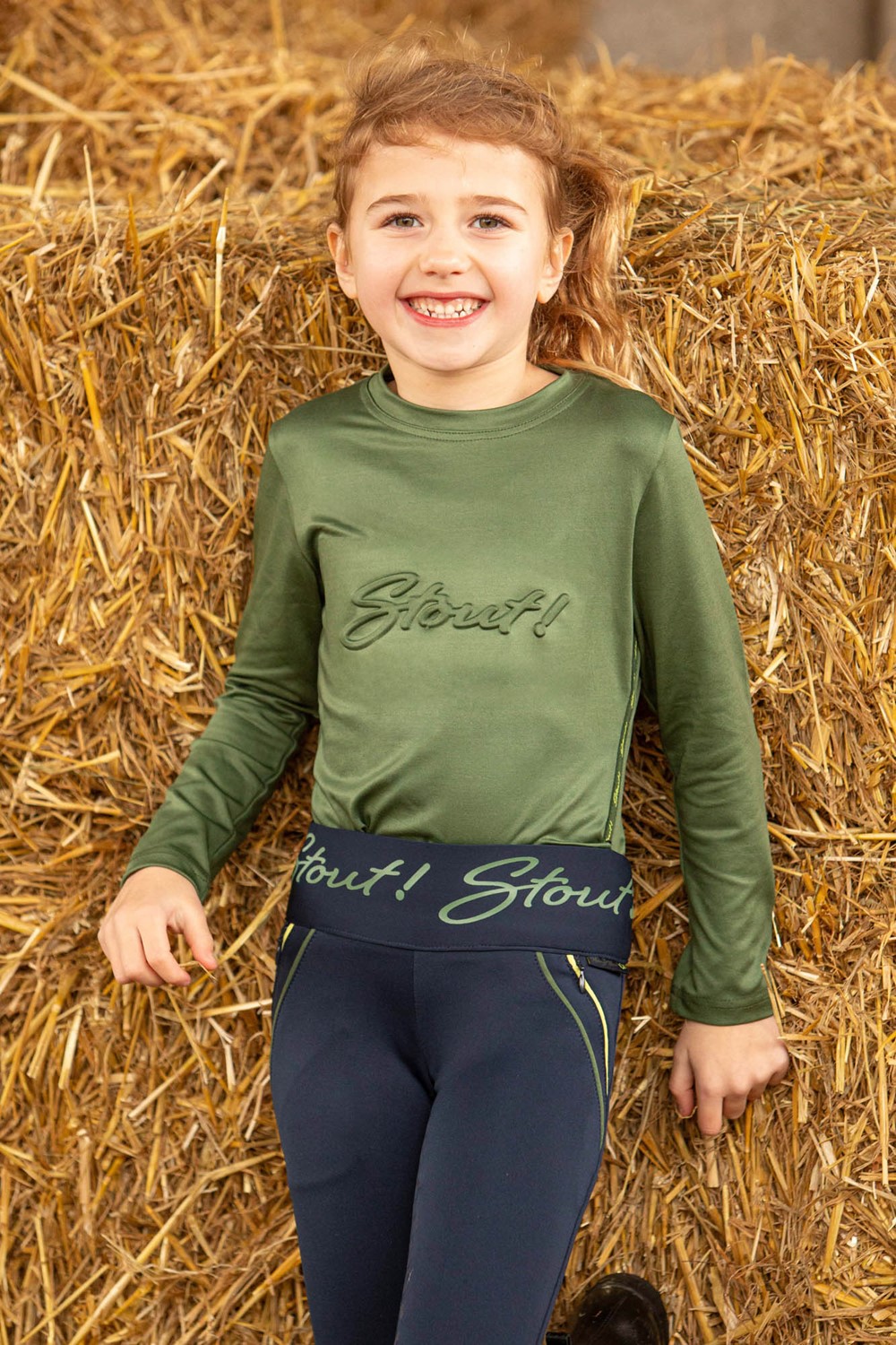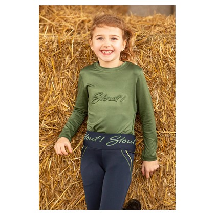 Langarmshirt mit Rundhalsausschnitt, STOUT!-Logo auf der Brust und einem Band mit STOUT!-Print auf der linken Seite.