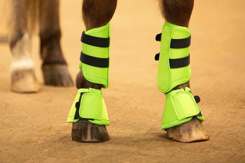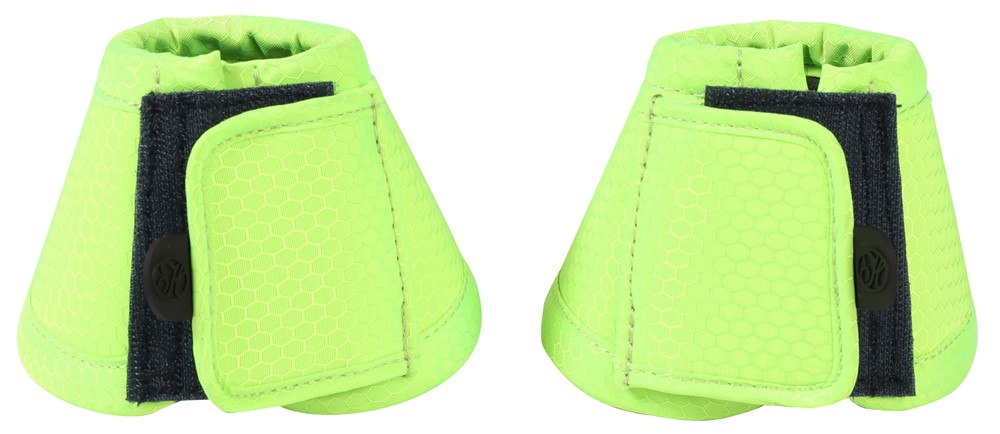 Springglocken mit elastischem Klettverschluss. Die Innenseite ist mit perforiertem Neopren gefüttert, das für optimale Wärmeableitung und Stoßdämpfung sorgt. Waschbar in der Waschmaschine bei 30 Grad.