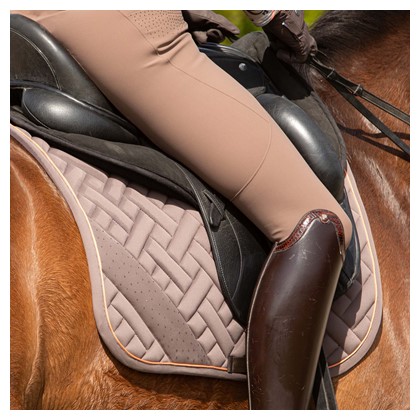 Schabracke mit umlaufender Paspelierung und einer diagonalen Kristallverzierung auf beiden Seiten. Ausgestattet mit Schlaufen für Sattel und Gurt sowie einem schnelltrocknenden Meshfutter.