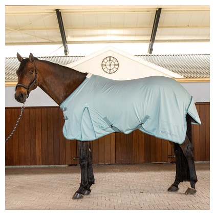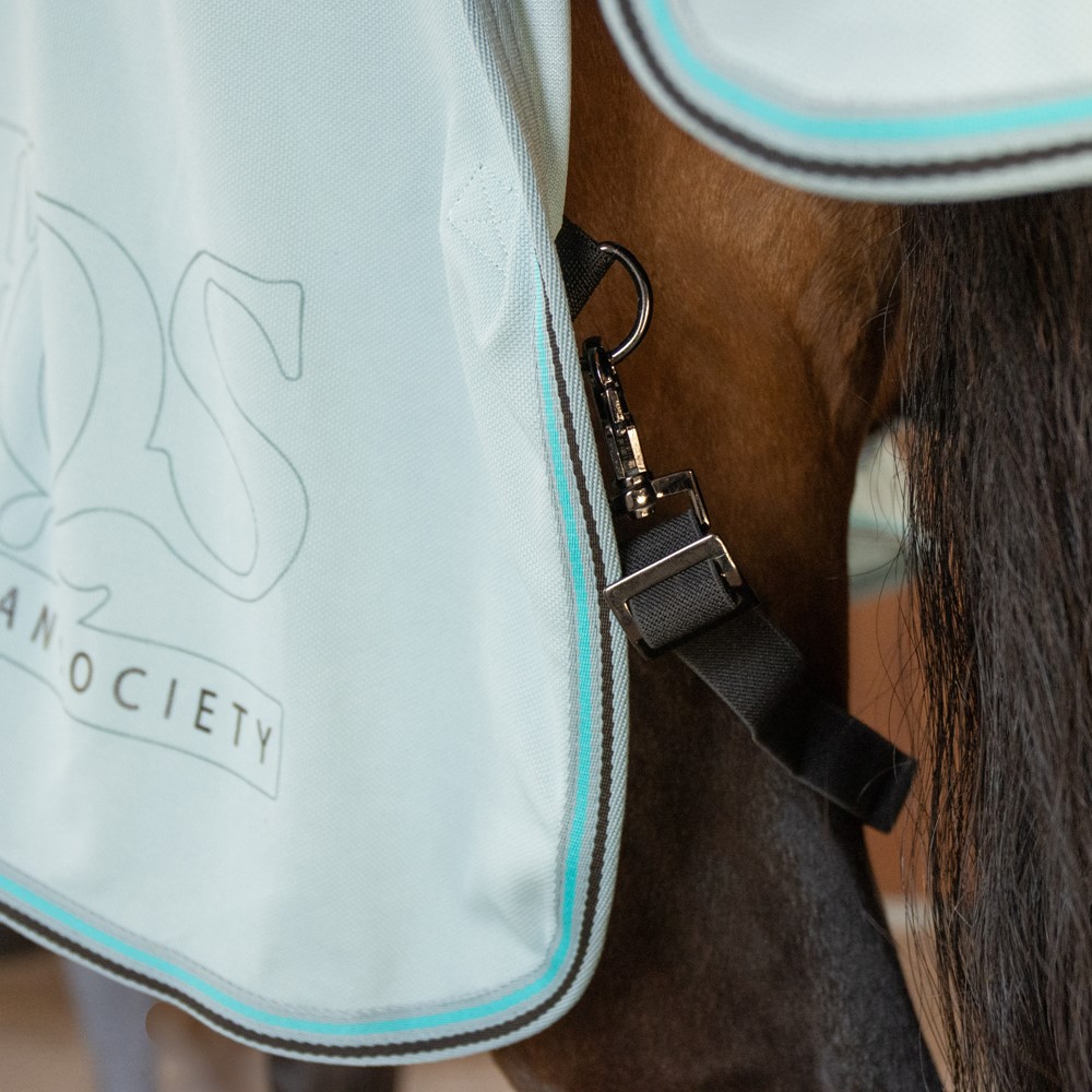 Die Decke verfügt über einen doppelt verschließbaren Brustverschluss, Kreuzgurte, abnehmbare Beinschnüre und eine Schweifklappe.