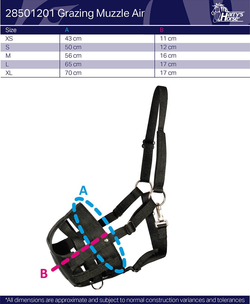 This grazing muzzle is a very popular style of muzzle used to restrict the grass intake of horses and ponies. This grazing muzzle is made from soft webbing with a padded nose and quick release throat.