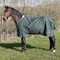 Outdoor rug with polyester lining. Seamless along the back, no filling. Features gussets and a tail flap. Double quick closure, cross surcingles, and detachable leg straps. Folded darts and taped side seams. Waterproof rating: 3000 WR/WP, breathability: 3000 MVP.