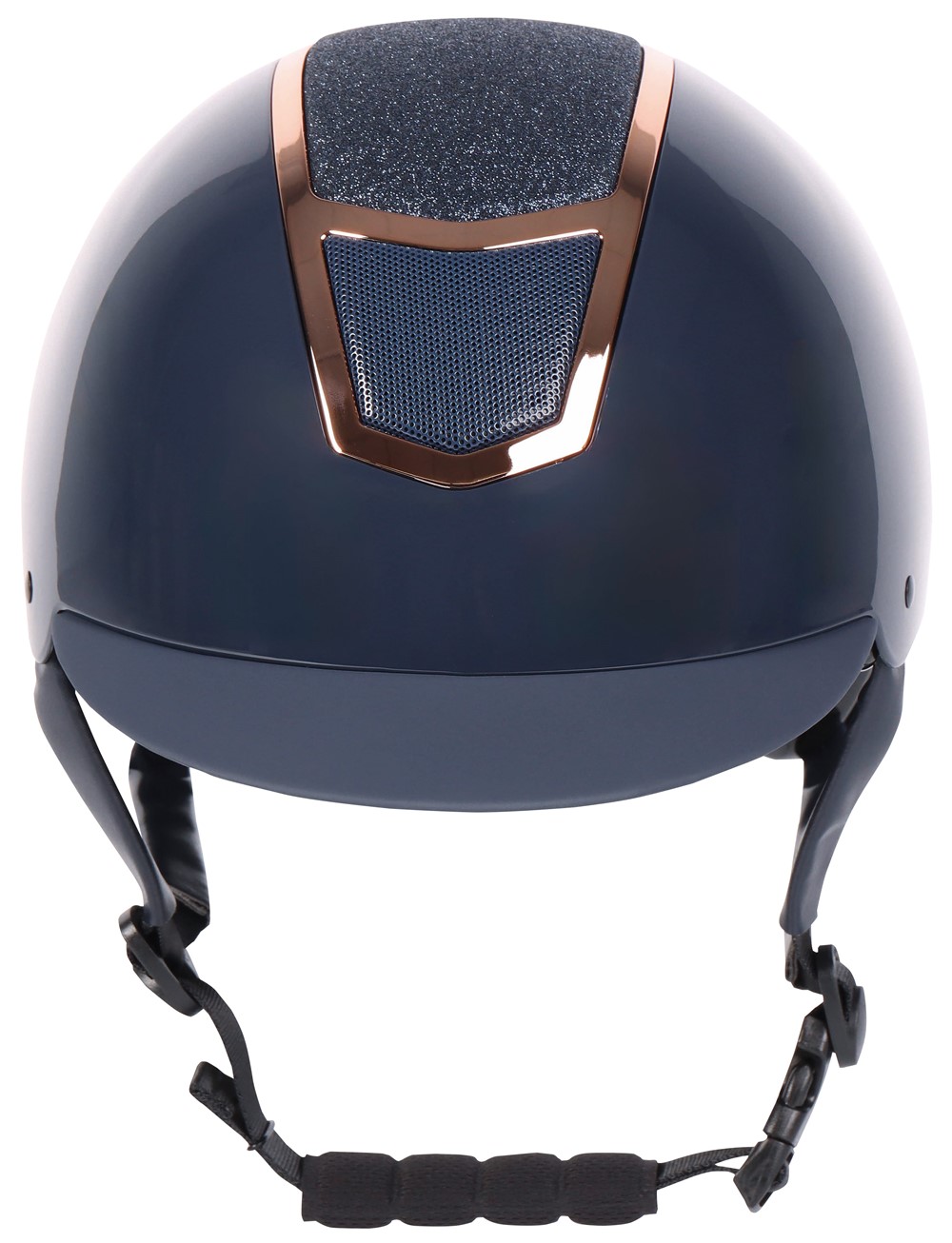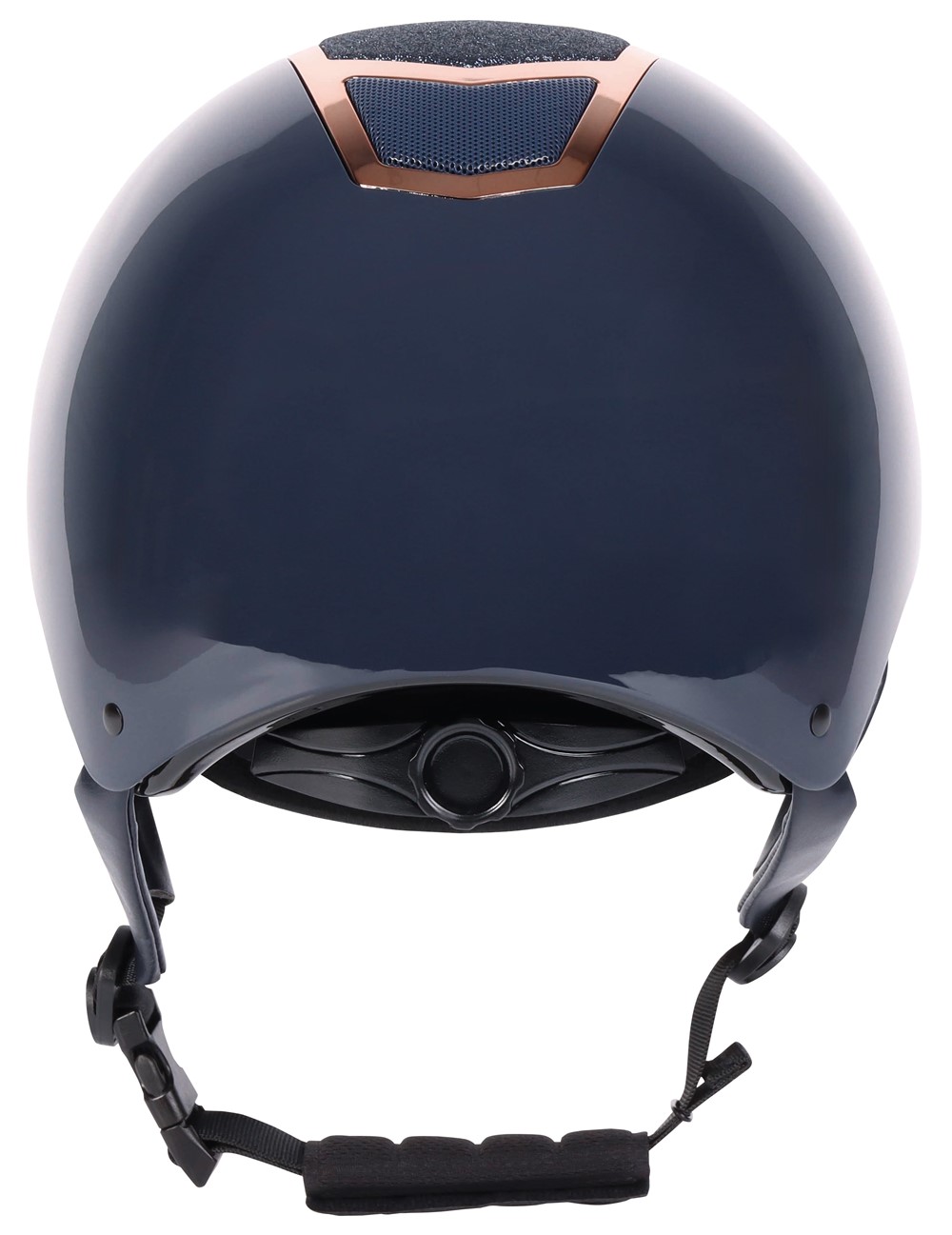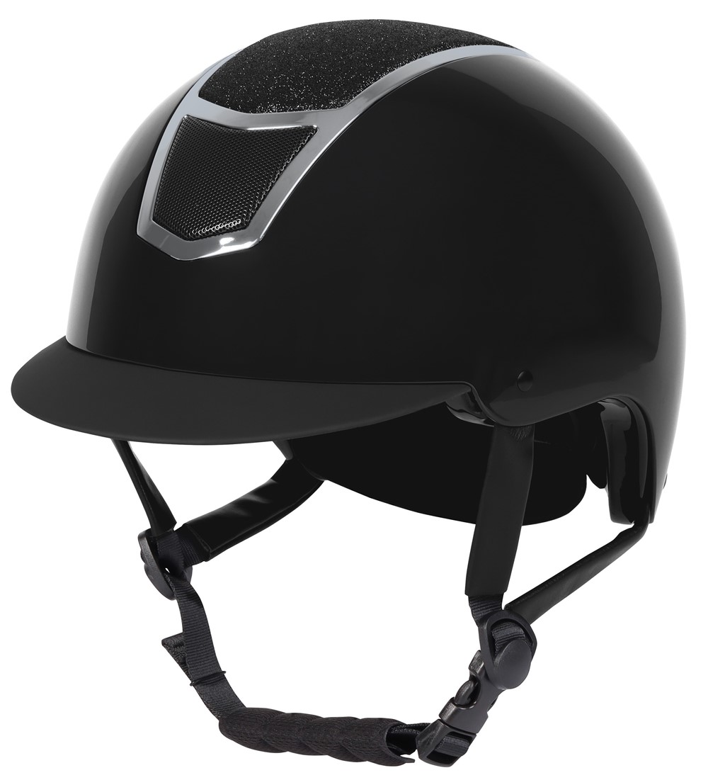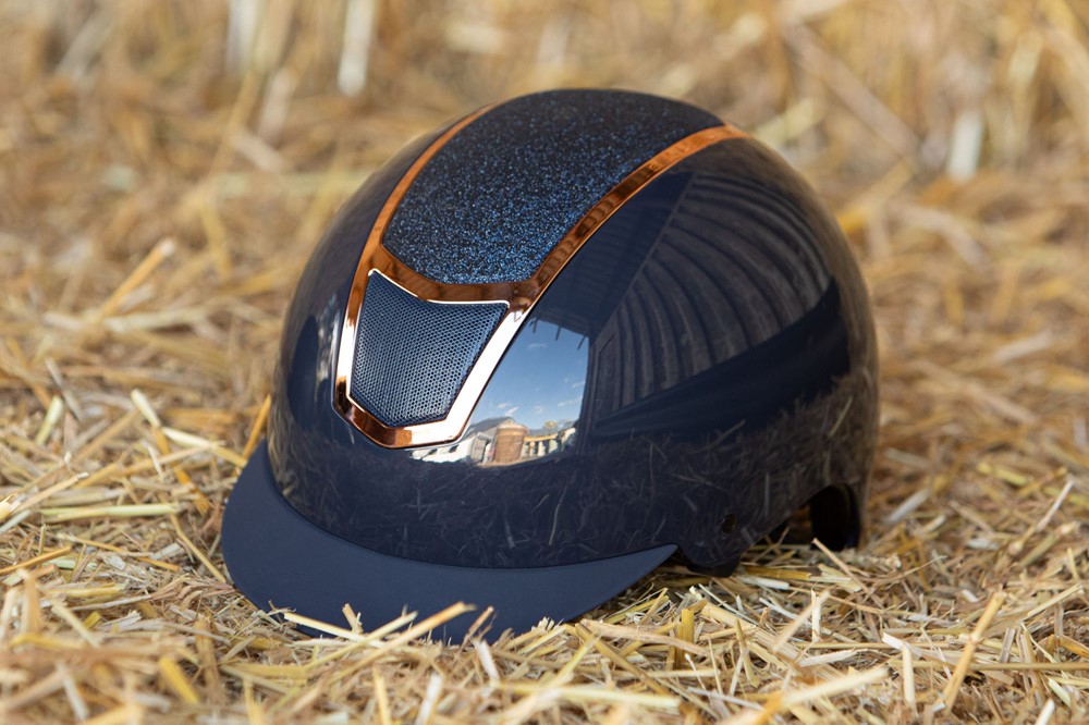 With removable and washable lining. Easily adjustable to size using a dial. Also equipped with multiple ventilation slots. The outer shell has a high-gloss finish, and the middle strip is adorned with crystals.