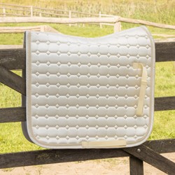 This luxurious saddle pad is made from a beautiful, heavy satin fabric, giving your horse an instantly elegant appearance. It is finished with a stylish decorative cord and double piping for an exclusive touch.