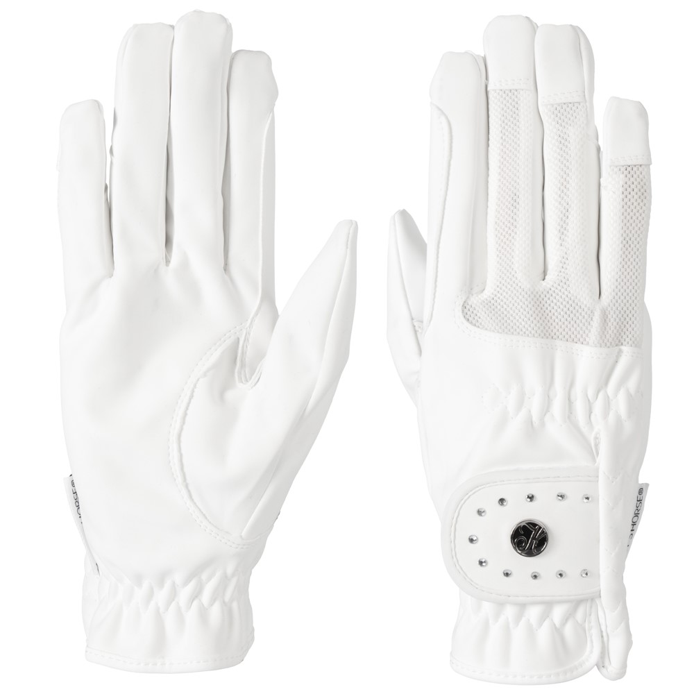Gants de luxe en Domy Suede, avec des empiècements élastiques aux points de mouvement pour une liberté de mouvement optimale. Le poignet élégant avec fermeture à scratch est orné de cristaux scintillants.