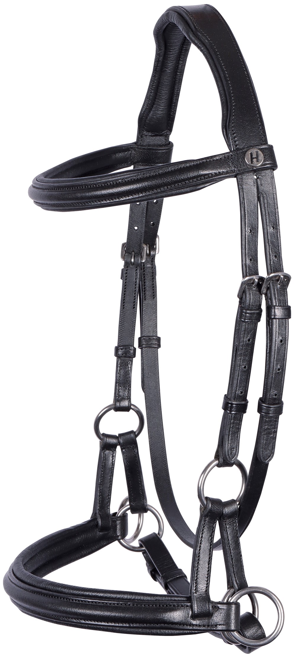 Bridon sans mors side-pull avec matelassage doux sur la têtière et la muserolle (3cm). Très bon outils d’entrainement, le side-pull permet d’avoir une autre approche du contrôle ou permet de ne pas mettre de mors en cas de blessure ou de problèmes de dents. Vendu avec rênes sangles. Niveau 3
