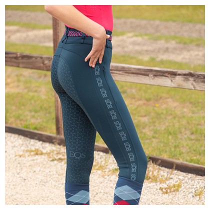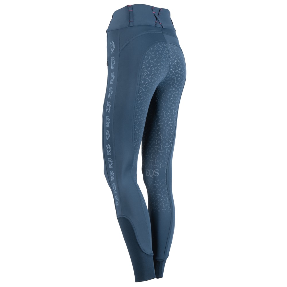 Legging d'équitation très confortable et extensible avec une large ceinture, passants de ceinture avec surpiqûres contrastantes et deux poches zippées. Imprimé EQS sur l’extérieur de la jambe. L’assise entièrement cousue est dotée d’un discret imprimé en silicone en forme de mors pour une meilleure adhérence en selle. Avec un empiècement élastique confortable autour des chevilles.