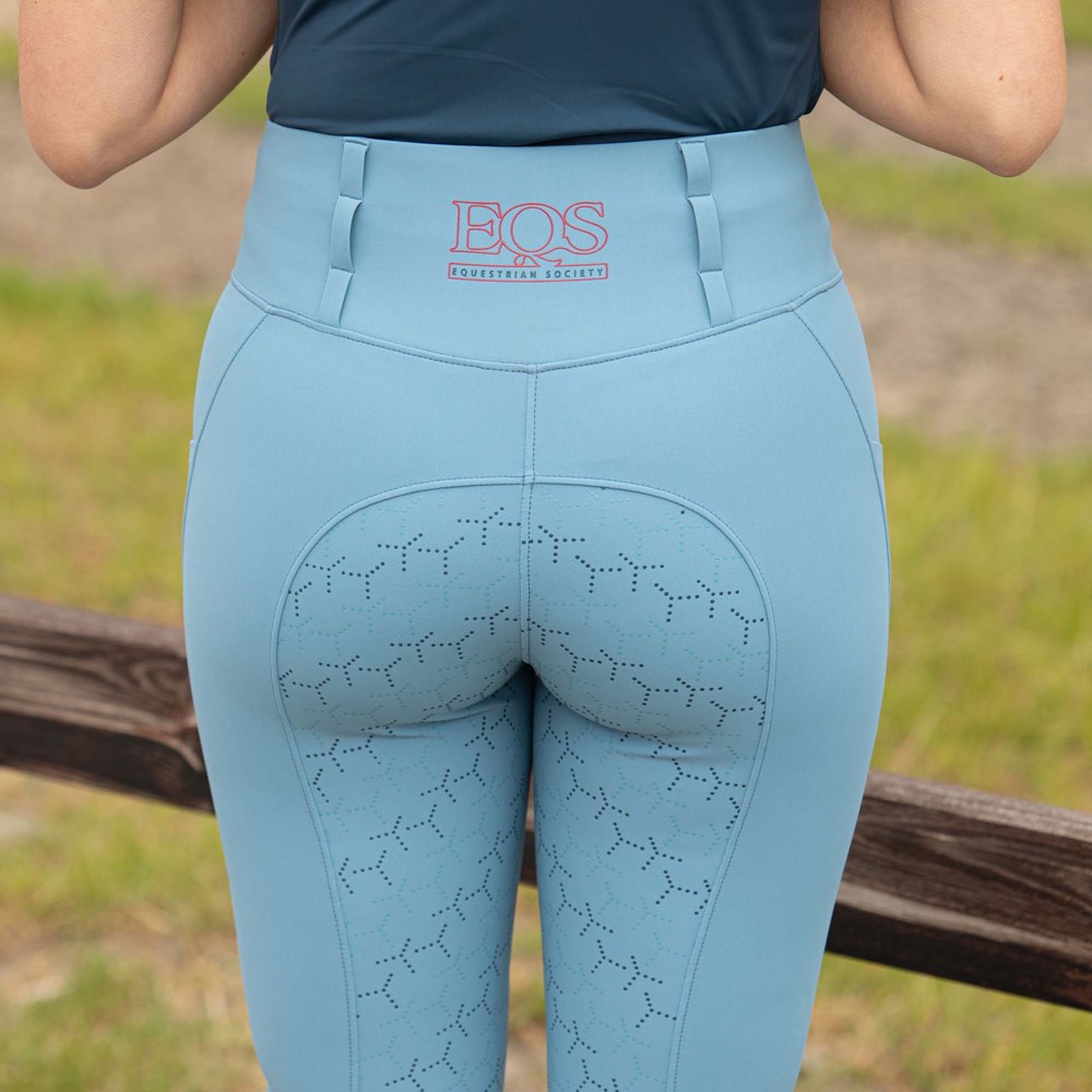 Legging d’équitation softshell ultra léger avec taille haute, orné du logo EQS imprimé. Passants de ceinture surpiqués tout autour, deux poches dont une avec un discret logo EQS découpé au laser. Assise entièrement cousue avec un imprimé en silicone bicolore pour une excellente adhérence en selle. Avec un empiècement élastique confortable autour des chevilles. Le pantalon d’équitation idéal pour l’été.