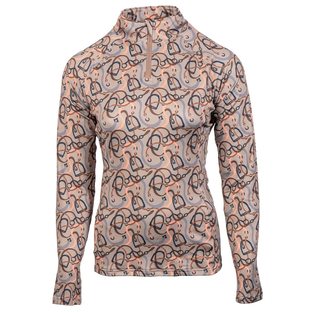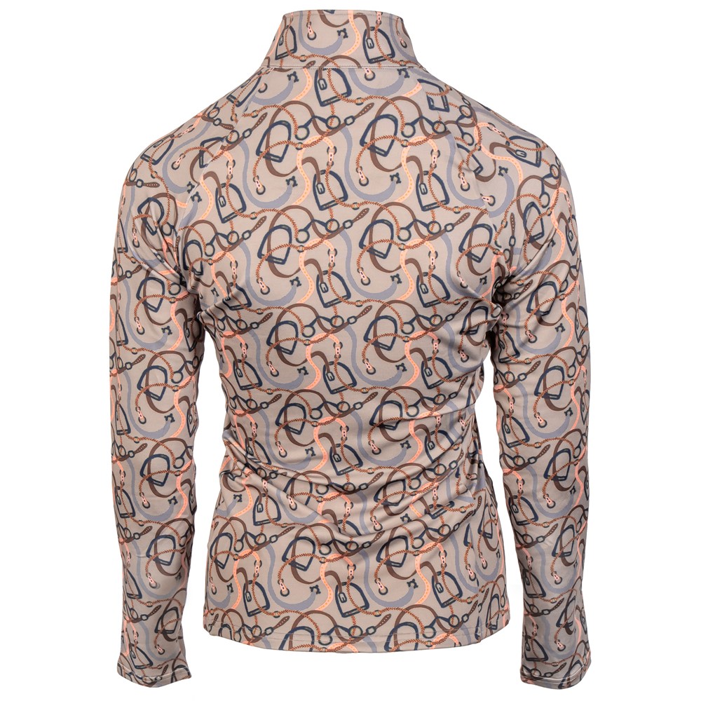 Ce confortable t-shirt à manches longues est doté d’un col montant et d’une fermeture éclair courte, offrant un look à la fois sportif et élégant. Son luxueux imprimé intégral sur le thème de l’équitation lui confère une allure raffinée et originale. Confectionné dans un mélange de polyester extensible pour une coupe parfaite et une liberté de mouvement optimale.