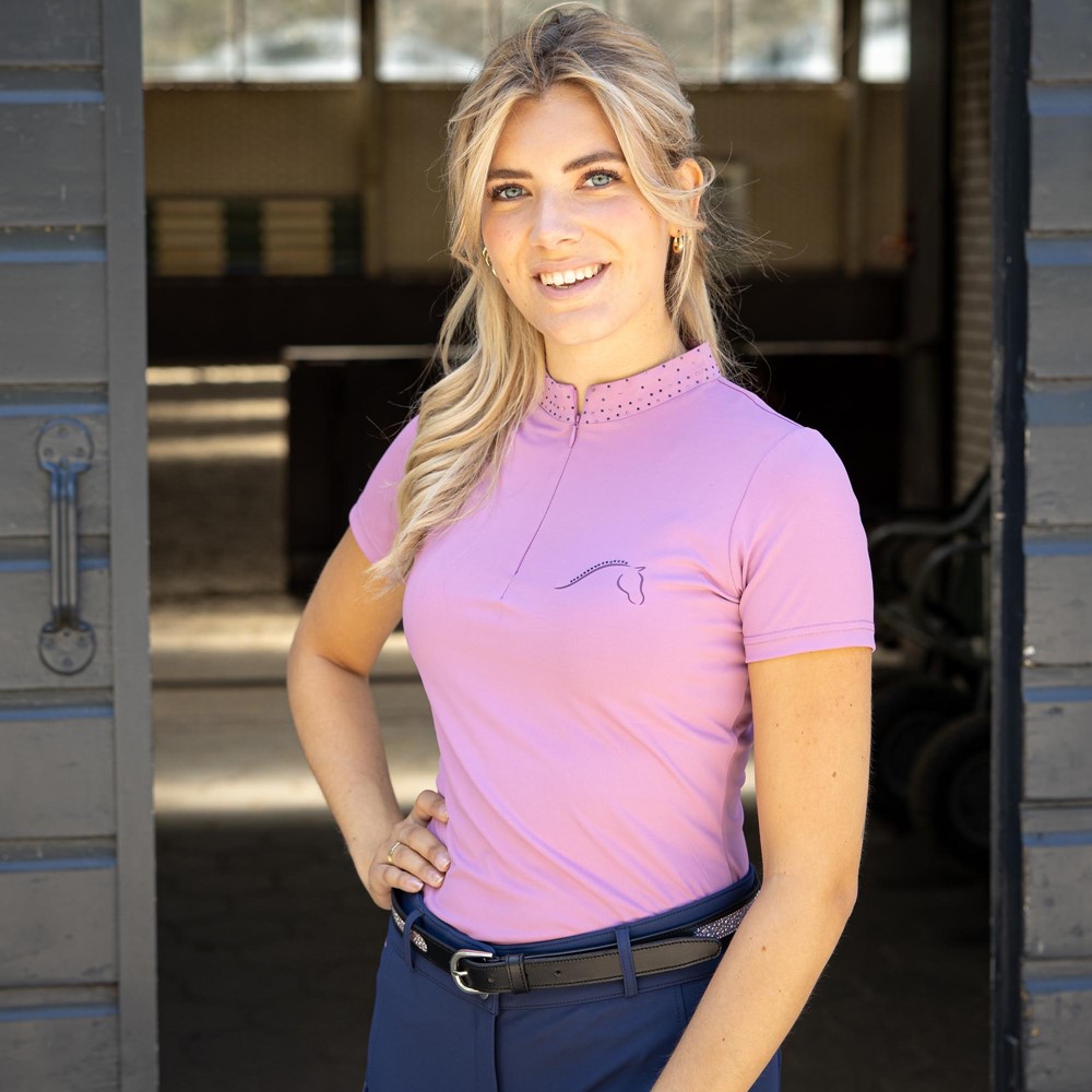 Chemise avec col montant entièrement orné de cristaux all-over et courte fermeture éclair. Le logo Denici Cavalli sur la poitrine gauche est également décoré de cristaux.