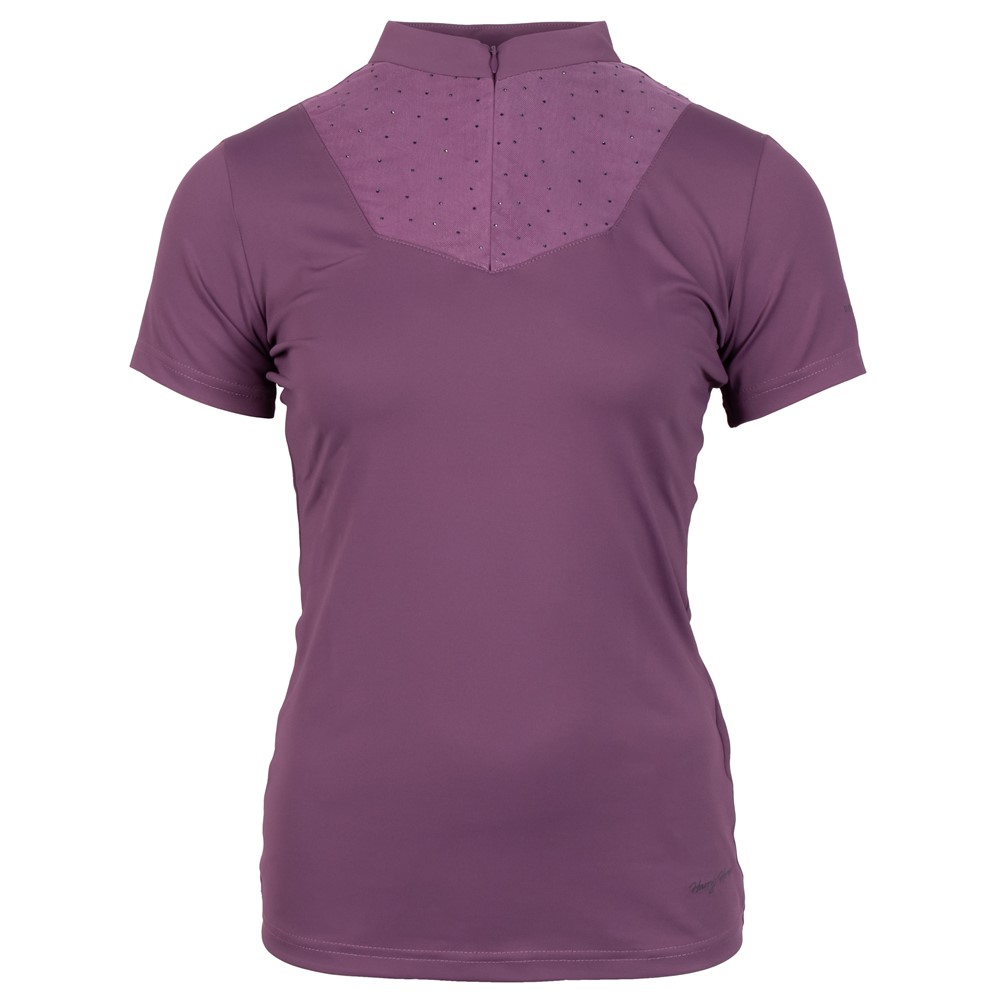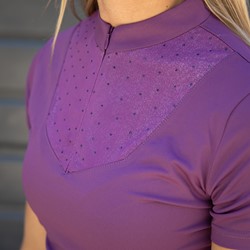 Chemise avec col montant et courte fermeture éclair. La poitrine présente un empiècement en mesh richement orné de cristaux all-over. Le logo Denici Cavalli orne la manche gauche.