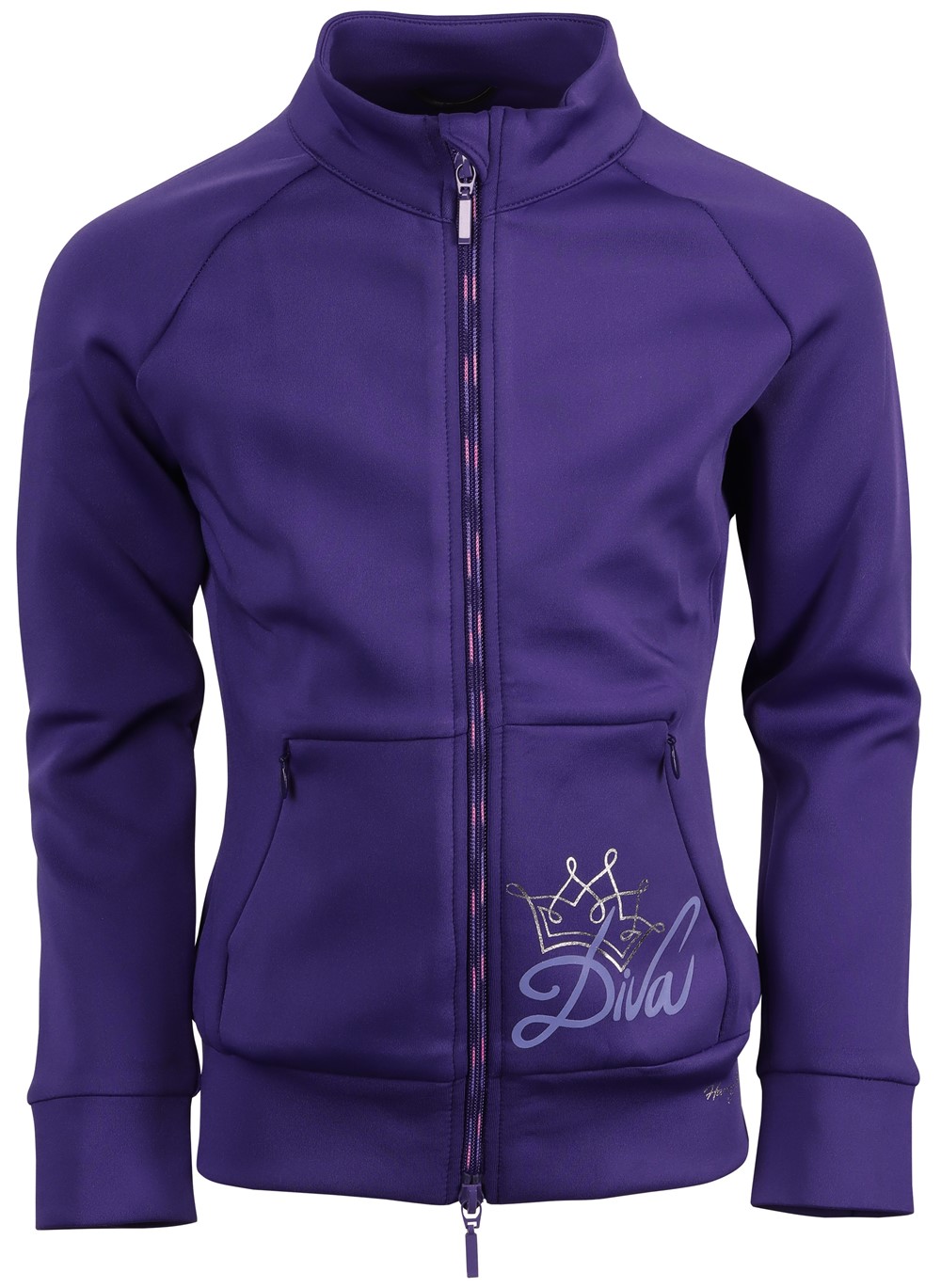Veste sportive avec fermeture éclair bidirectionnelle, deux poches zippées et logos Diva sur la poche gauche.