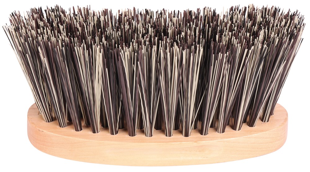 Deze banaan vormige houten borstel is voorzien van medium harde haren van polyester. Medium harde haren zorgen voor grondige reiniging zonder irritatie.