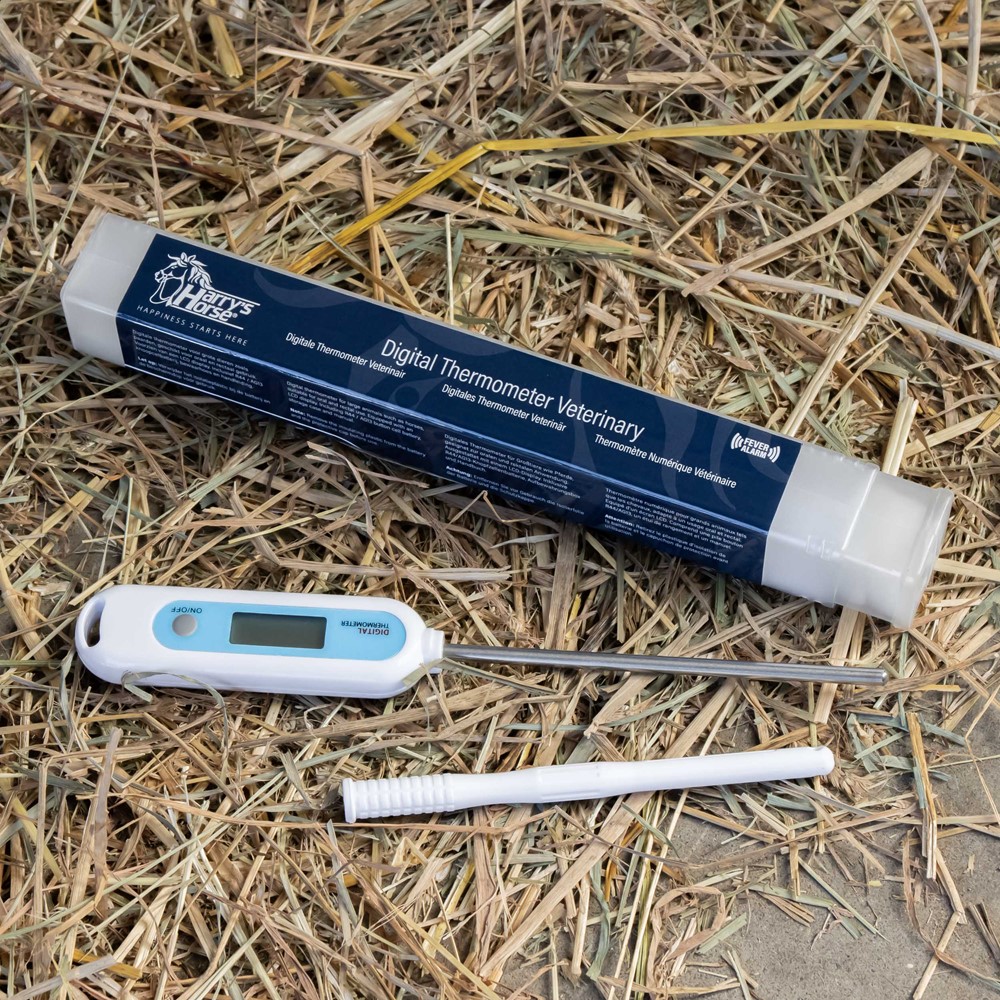 Digitale thermometer speciaal voor grote dieren zoals paarden. Deze orale en rectale digitale thermometer is ontworpen voor diergeneeskundig gebruik en heeft een eenvoudig af te lezen display. Wordt geleverd in handige bewaarhoes. Let op: Verwijder eerst het isoleer plasticje bij de batterij. Naast de bewaardoos zit er nog een dop op de thermometer, haal deze eraf voordat je gaat temperaturen!