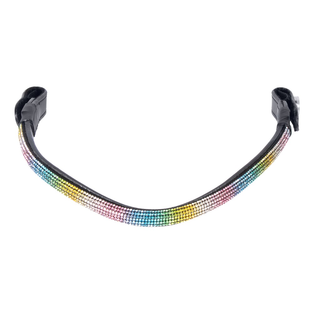 Leren frontriem voorzien van regenboogkleurige kristallen.