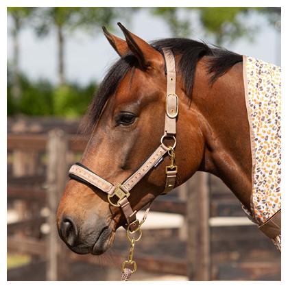 Dit luxe halster is stijlvol afgewerkt met fonkelende kristallen op de neusriem en bakstukken. Voorzien van zachte neopreen voering op alle contactpunten voor extra comfort en ter voorkoming van schuurplekken. Zowel het kopstuk (aan beide zijden) als de neusriem zijn verstelbaar voor een perfecte pasvorm. Geleverd inclusief bijpassend halstertouw van 2 meter.