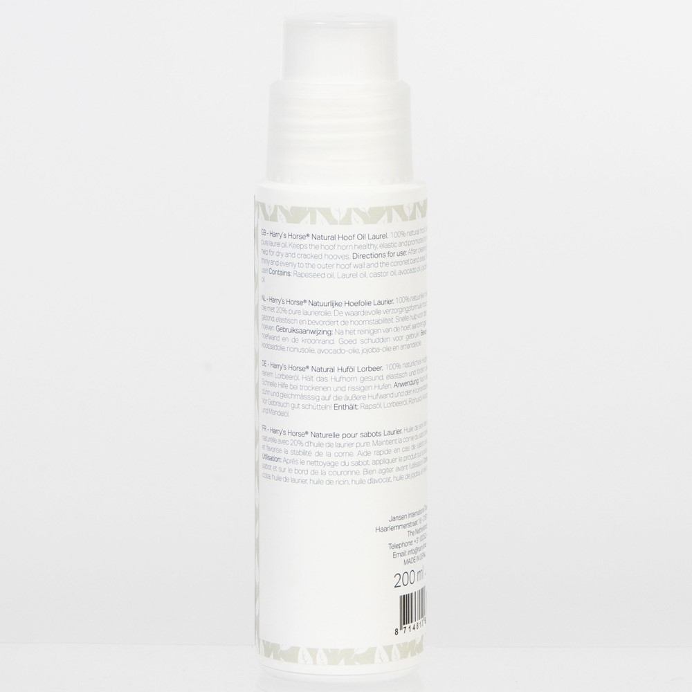 100% natuurlijke hoefverzorgingsolie met 20% pure laurierolie. De waardevolle verzorgingsformule houdt het hoefhoorn gezond, elastisch en bevordert de hoornstabiliteit. Snelle hulp voor droge en gebarsten hoeven. Reinig de hoef en breng met de borstel de olie aan op de buitenwand van de hoef en de kroonrand. Goed schudden voor gebruik.