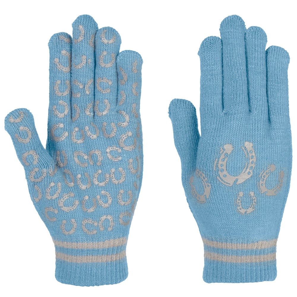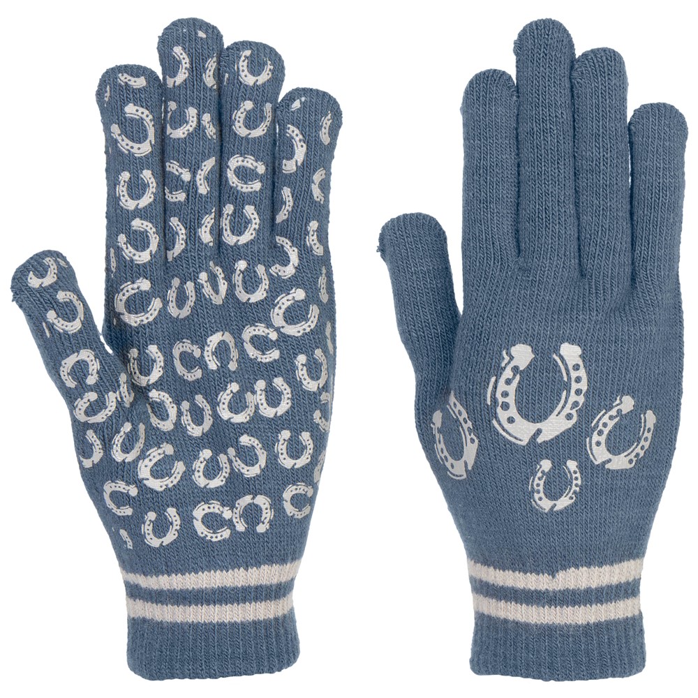 Stijlvolle en elastische handschoenen van zacht, gebreid materiaal, voorzien van een comfortabele, aansluitende boord. De handpalm heeft een hoefijzerprint die zorgt voor extra grip, terwijl de speelse hoefijzerdetails de handschoenen een herkenbare en modieuze uitstraling geven.