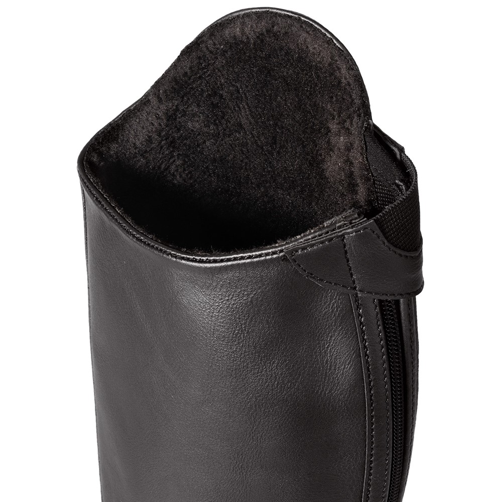Stijlvolle minichaps met warme voering van kunstbont. Voorzien van een elastisch kuitgedeelte voor een optimale pasvorm en een ritssluiting aan de achterzijde. Afgewerkt met glanzende lakdetails aan de buitenzijde van de kuit voor een elegante uitstraling.