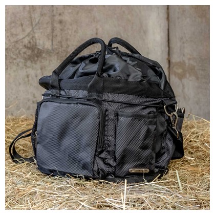 Poetstas met meerdere buitenvakken en een ruime binnenkant voor al je verzorgingsspullen. Afsluitbaar aan de bovenzijde met een trekkoord. Voorzien van rubberen nopjes aan de onderzijde om beschadiging te voorkomen.