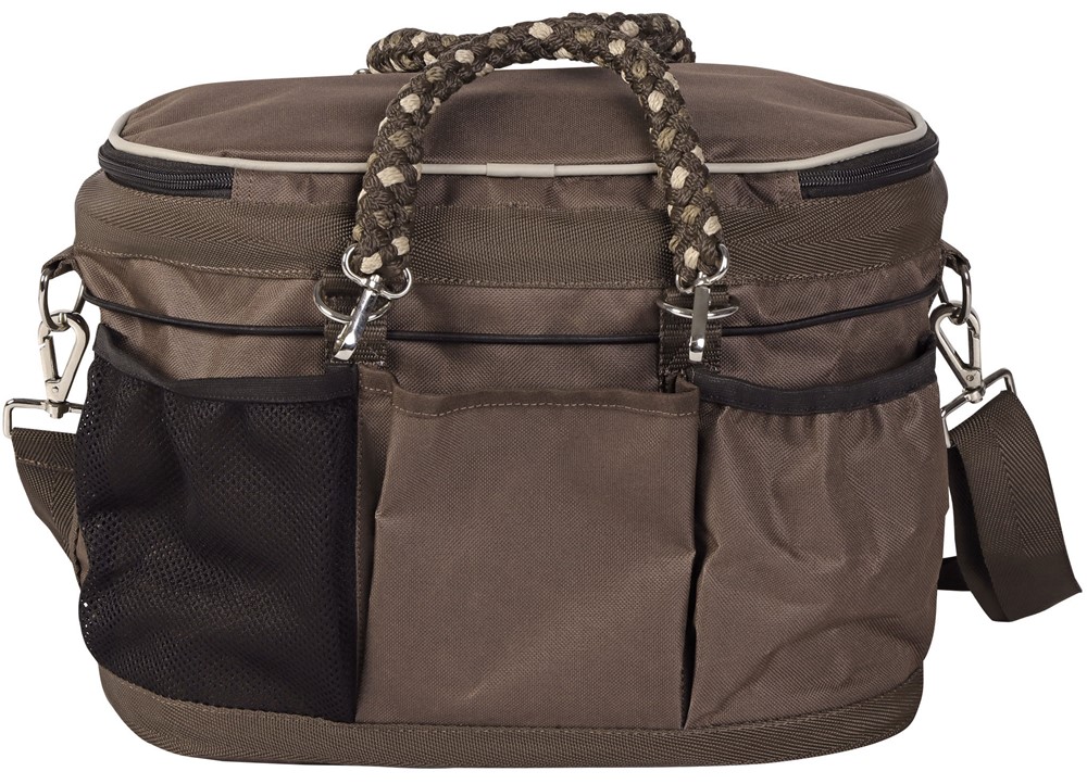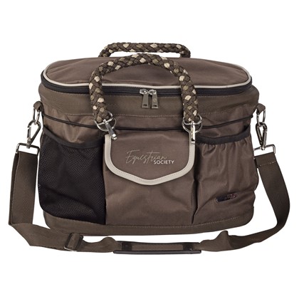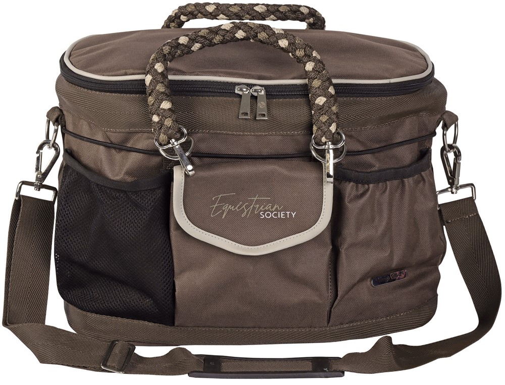 Poetstas van 600D polyester met kunstleder pipings en een gevlochten handvat, diverse vakken aan de buitenkant waarvan een met een flap met het Equestrian Society logo erop.