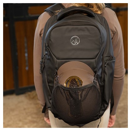 Gevoerd vak voor laptop, paardenpaspoort of belangrijke documenten en een extra mesh vak met ritssluiting voor kleinere items. Ruim hoofdcompartiment geschikt voor borstels, lunchpakket en dergelijke. De buitenkant is voorzien van slimme opbergmogelijkheden: