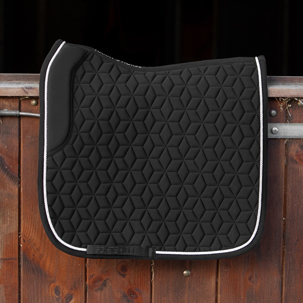 Zadeldek in mooi softshell materiaal en voorzien van een fraaie quilt. Het zadeldek heeft een sneldrogende en ademende mesh voering.