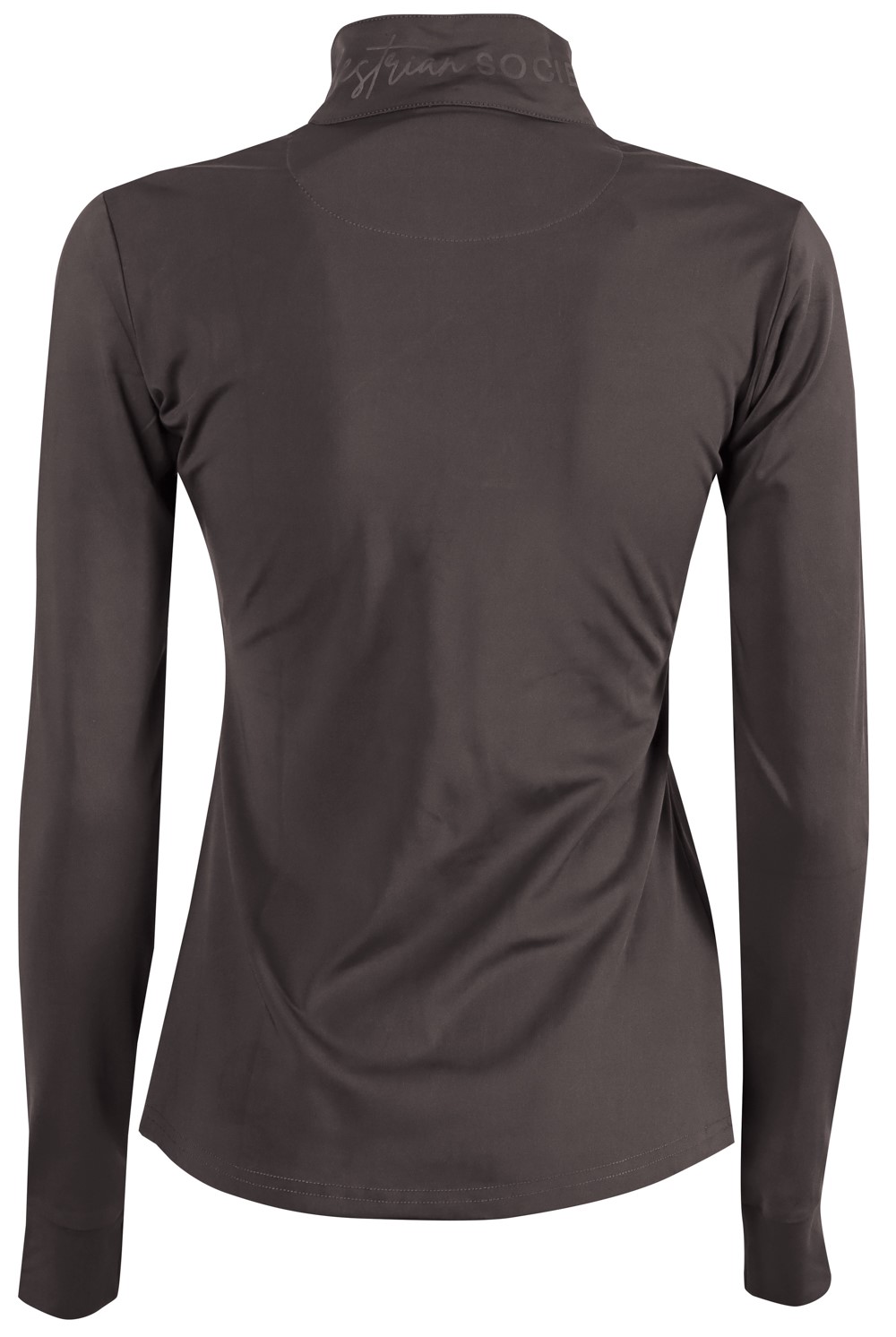 Shirt met lange mouw, opstaande kraag met korte ritssluiting en het Equestrian Society logo op de kraag en op de linkermouw.