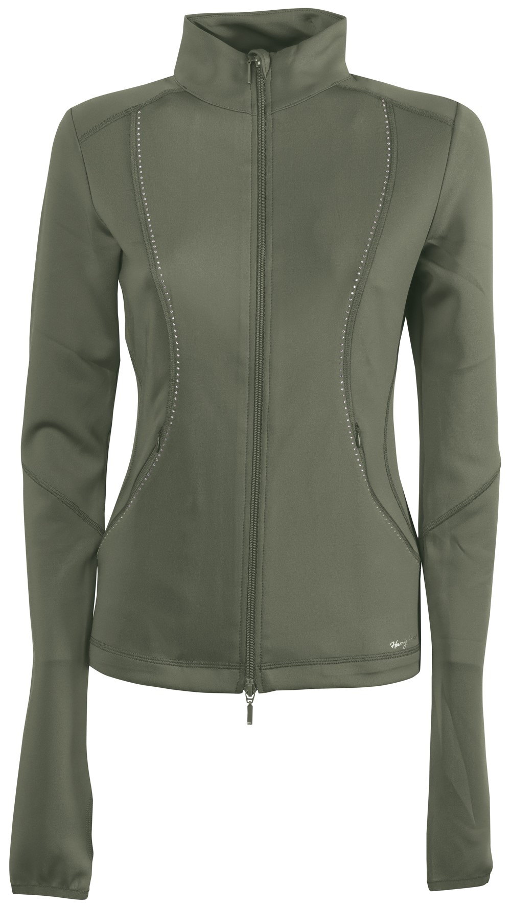 Sportief vest met een tweeweg ritssluiting, speelse stiksels met een rij kristallen ernaast op het voor- en achterpand, twee zakken met ritssluiting, extra lange mouwen met een duimgat, Equestrian Society print op de linkermouw en een ophanglus.